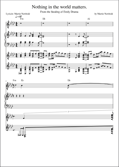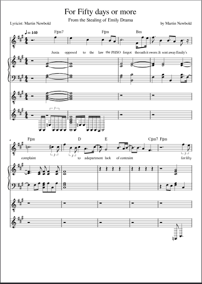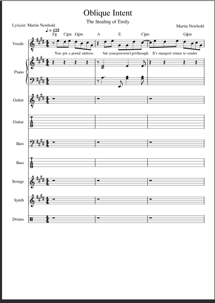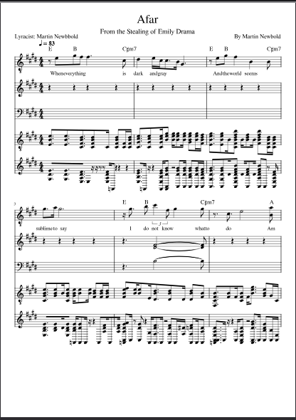 These pieces are available as songs, bringing his poetic narratives to life through music. The music is also available on Music Score for at least sixteen of the poems. These are hoped to be part of the theater production and film for the *Stealing of Emily* series of books.