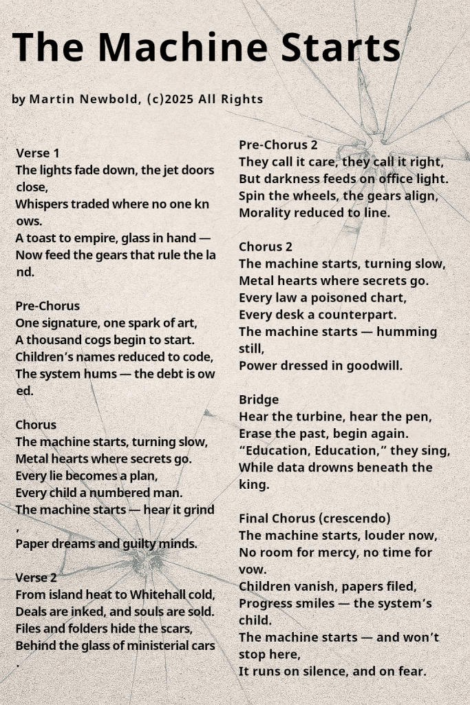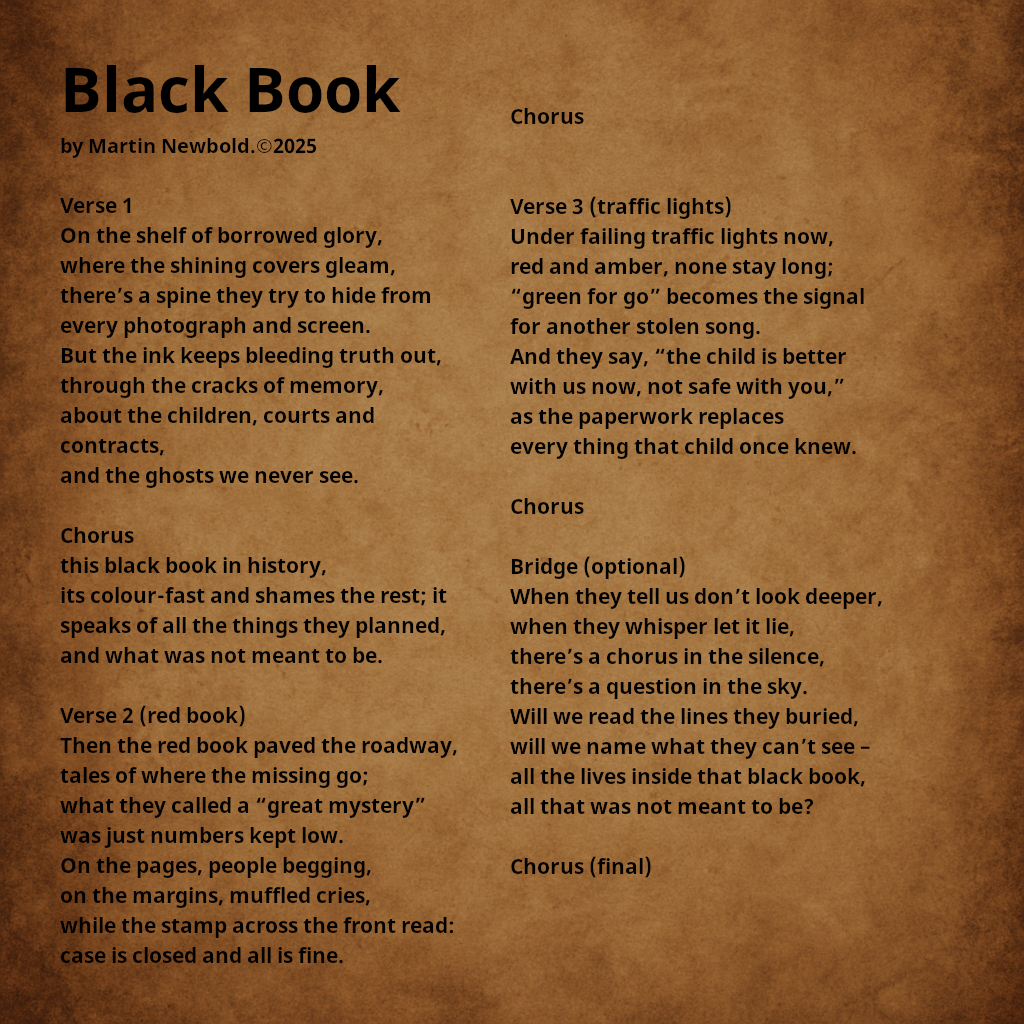 I’m Martin Newbold – author of The Stealing of Emily series and The Badgers of Bunger Hill, but also a composer and programmer. Most of my work here explores the same themes as my books: missing children, digital systems, and the quiet machinery behind public life.